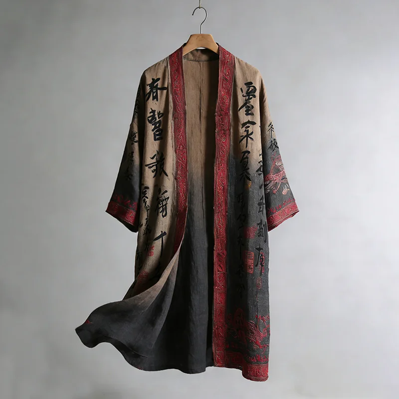 Men's Retro Calligraphy And Painting Art Linen Long Kimono